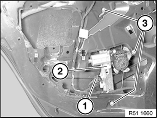 51 37 000 Removing and Installing Complete Power Window Lifter from Rear Left and Right Sides (Sedan, Touring)