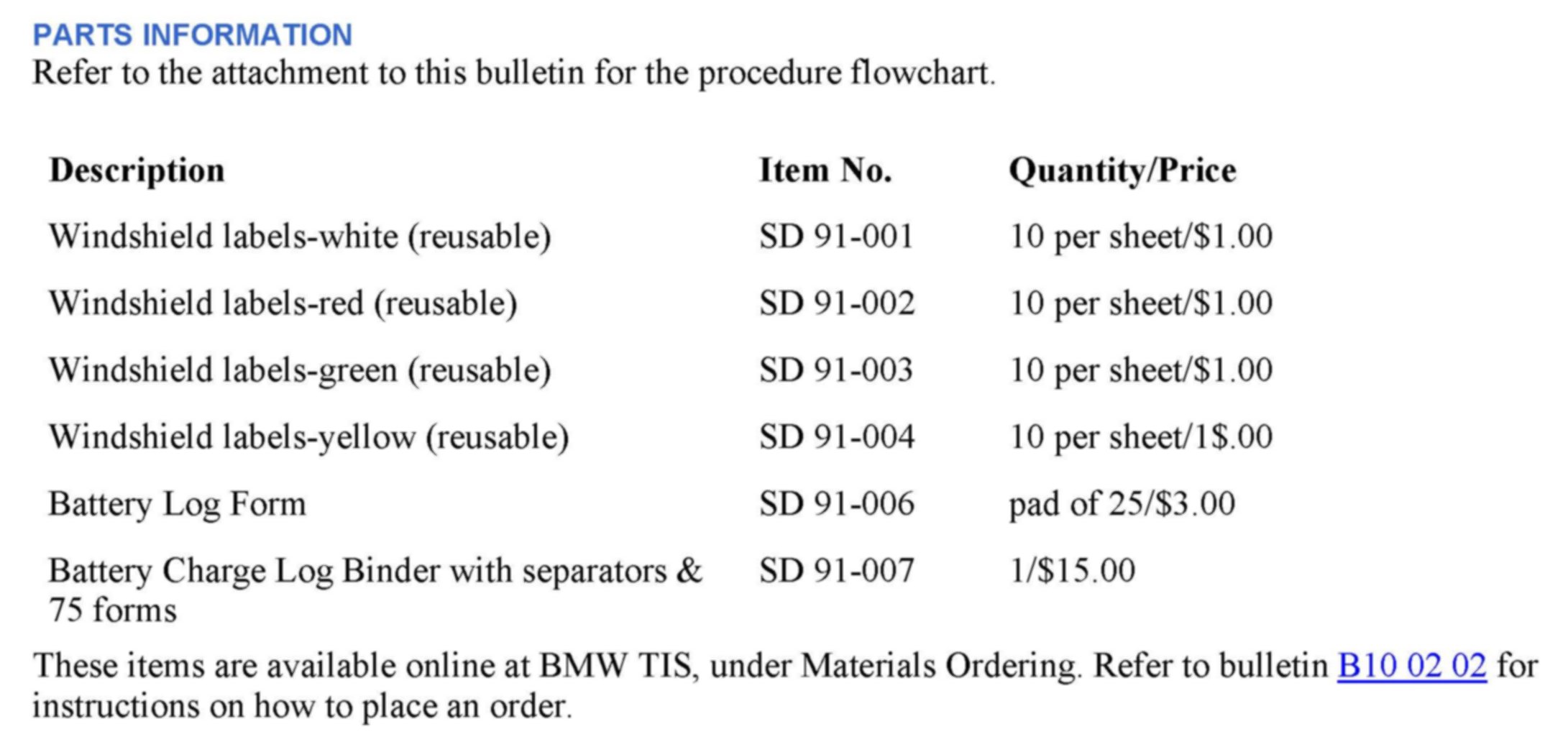 Note 1: For those BMW centers which have established their own working battery maintenance procedure which fulfills BMW guidelines, Section C can be used to track the charging of those vehicles.