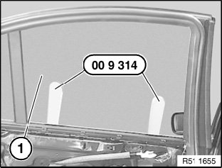 - If necessary, push door window glass (1) towards top and secure from inside with special tool 00 9 314 (adjustment wedges).