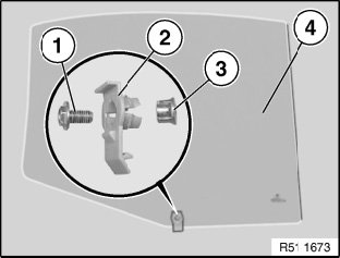 If necessary, fit new screw (1) and nut (3) on door window glass (4).
