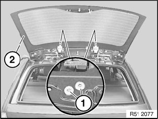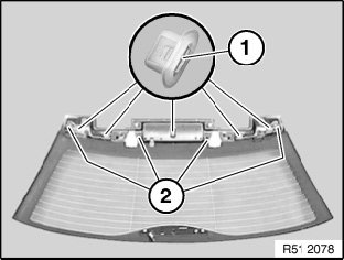 CAUTION: The rear window (with frame) must not be pulled or lifted by its plugs, wires or foil conductor (risk of damage).