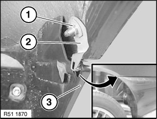 Lift out wheel arch finisher (2) on left/right and pull bumper (3) a little to rear.