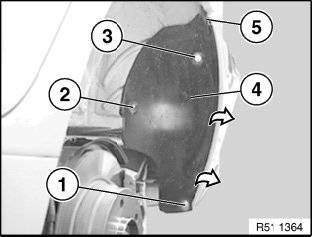 Lever out wheel arch cover (4) and remove.