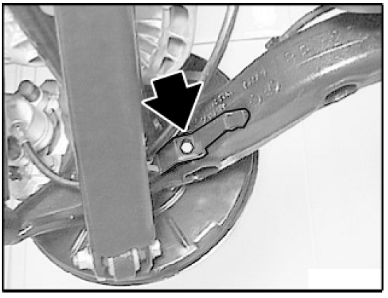 Remove brake caliper on both sides of trailing arm and tie back.