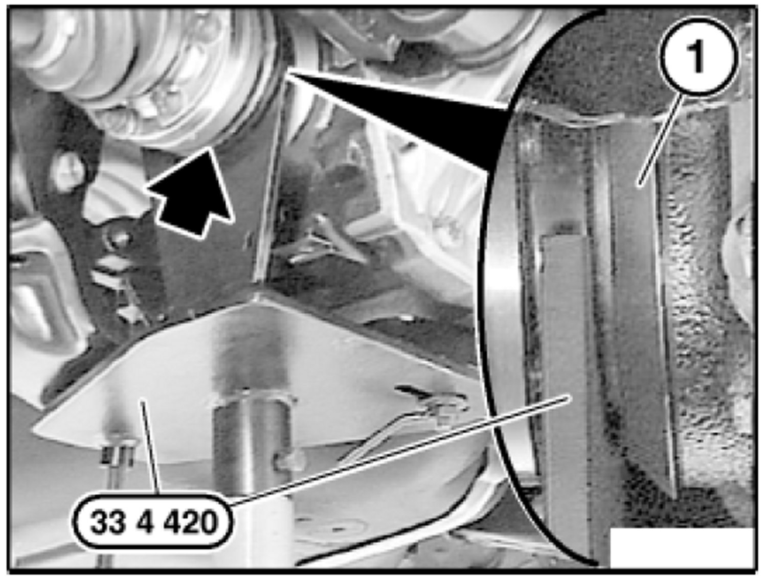 Observe gap between special tool 33 4 420 and dust plates (1).