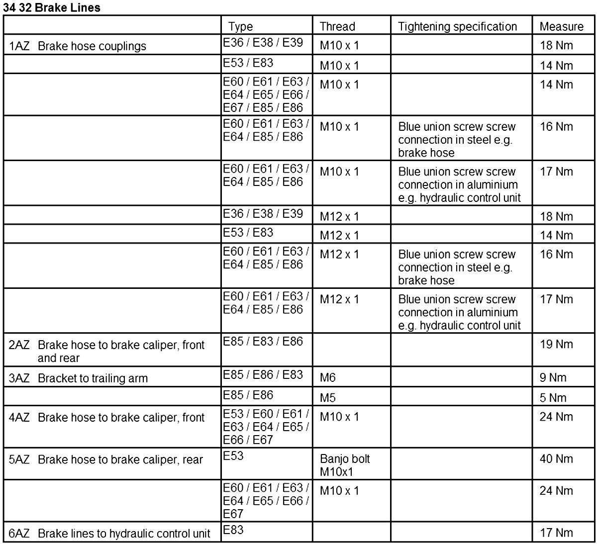Torque Specs: