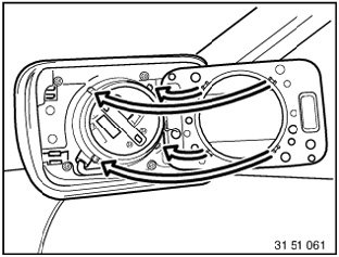 If applicable, remove connector (mirror glass heating) and remove mirror glass.
