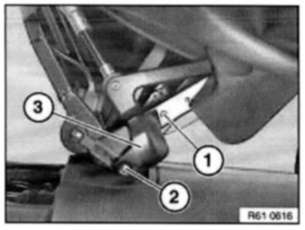 Open tensioning bar (1) and convertible top compartment lid (2) as illustrated.
