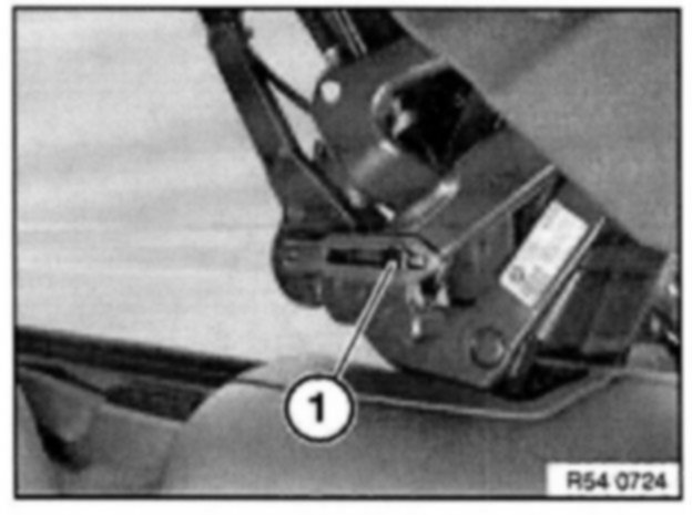 Release screws (2) and feed sensor for tensioning bar (4) out of convertible top frame (3).