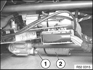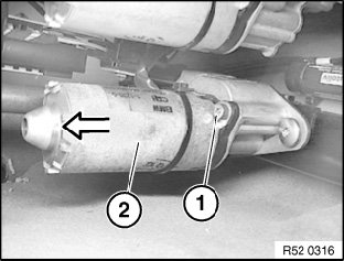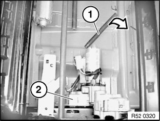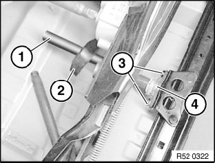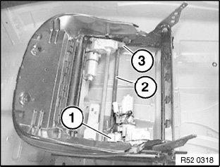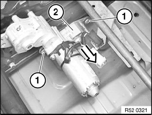 Release screw (1) on servodrive (2) of longitudinal seat adjustment and remove servodrive (2).