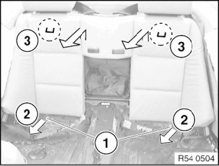 Make sure backrest lugs (3) on left and right are firmly seated in partition wall.