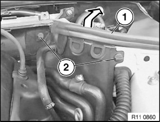 Release screws (1) and remove microfilter housing towards front.