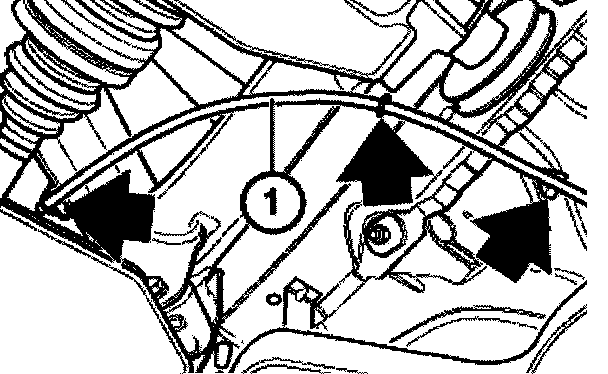 Pull handbrake Bowden cable (1) out of brackets.