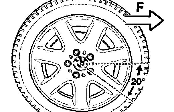 Bring wheel into position (tapped hole turned down approx. 20° from horizontal).