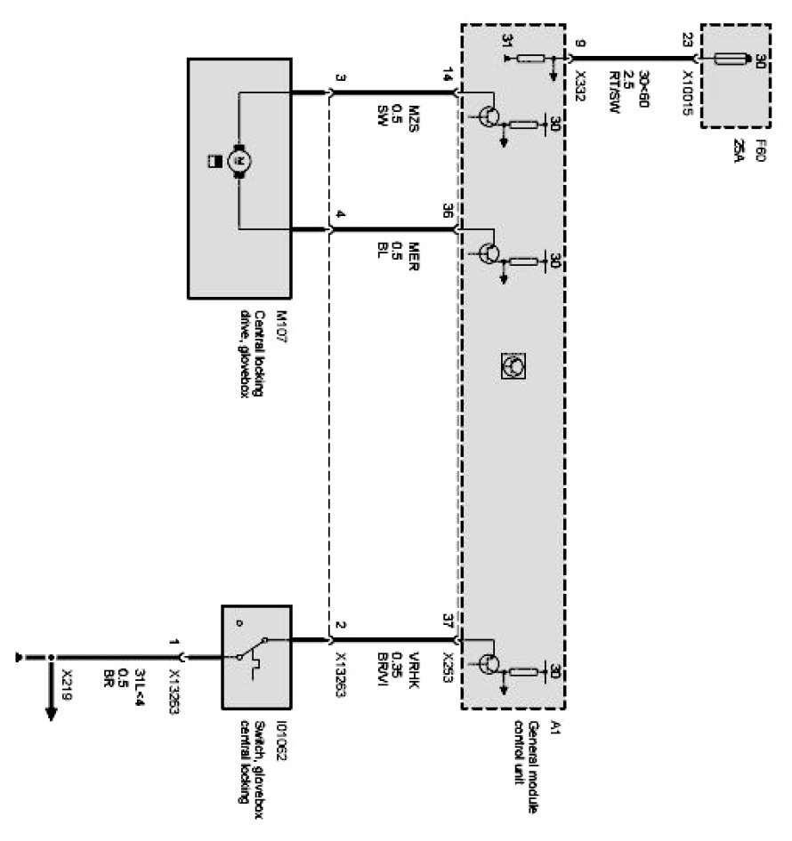 Central locking drive, glovebox: