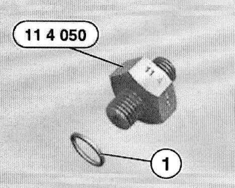 Install special tool 11 4 050 with sealing ring (1) in place of oil pressure switch.