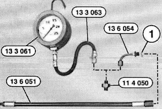 Install special tool 13 3 063 and special tool 13 3 061 (pressure gauge).
