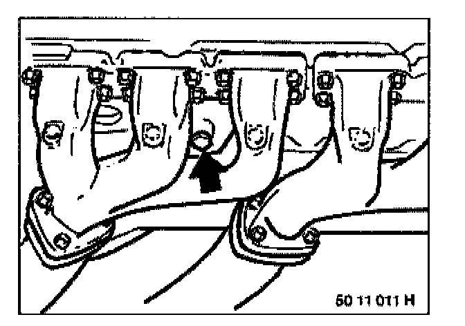 Note: M52/S52 The water drain plug is located on the exhaust side between cylinders 4 and 5 in the engine block (illustration).