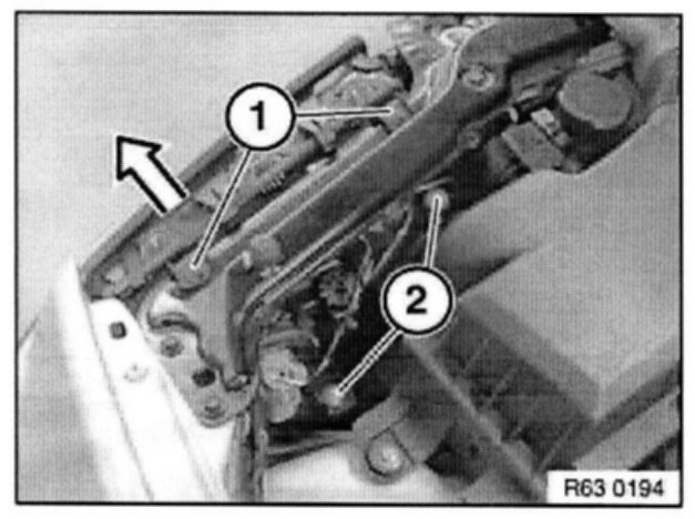 Open hood and tighten down screws (1).
