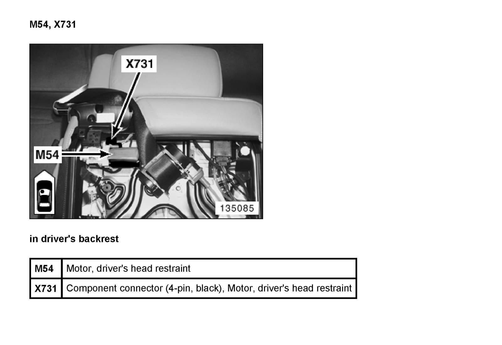 X731 Plug, Motor, Head Restraint, Driver