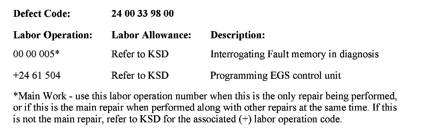 On a customer complaint basis only, reprogram the EGS control module using the "Manual entry"