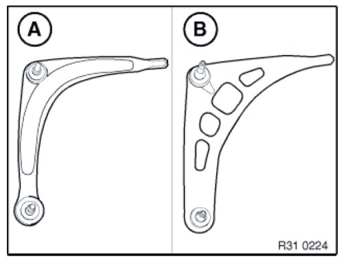 Control arms without opening are no longer available as new parts! If one control arm is damaged, both control arms must be replaced with control arms with opening! Fitting one control arm of each type is not permitted!