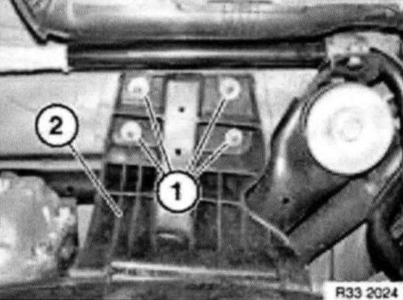 Release screws (1) and remove spare wheel recess (2).