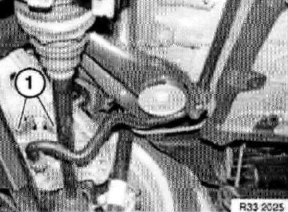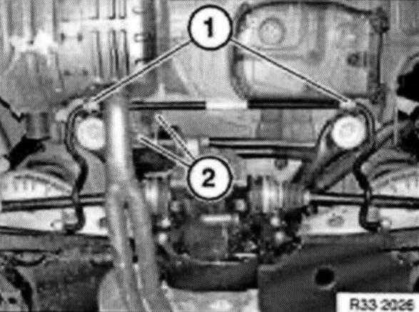 Remove stabilizer bar with rubber mounts from control arm at top and from rear axle carrier.