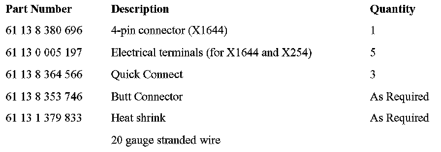 Pin 4 (X1644) to pin 4 (X1582)