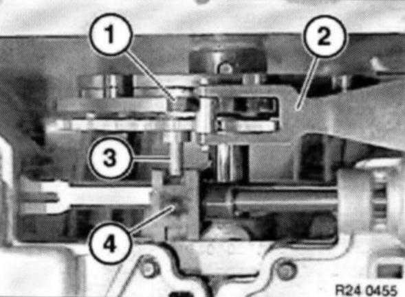 Caution: Journal (3) of detent disk must be located in groove (4) of slide valve.