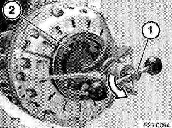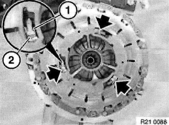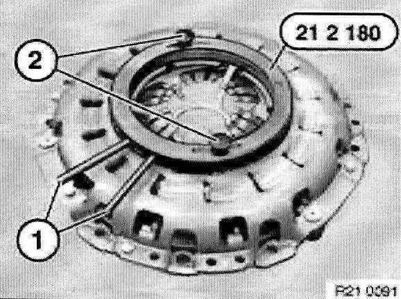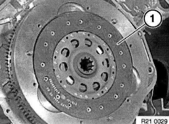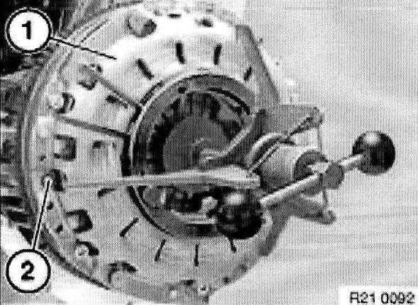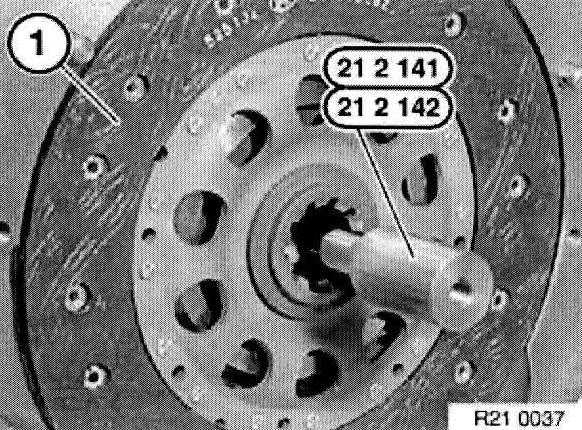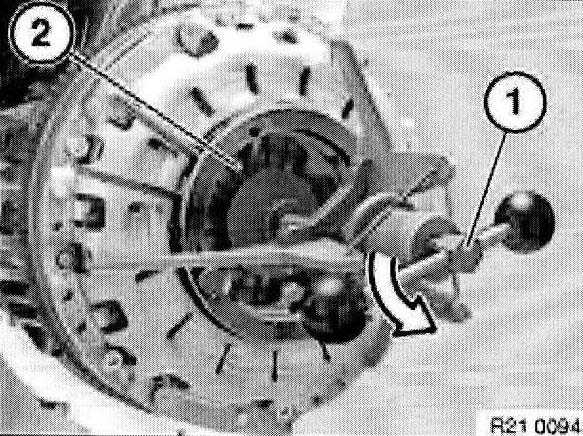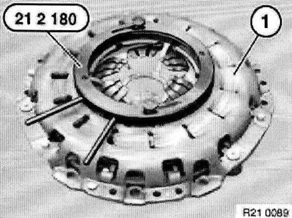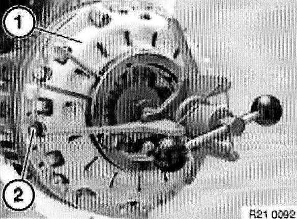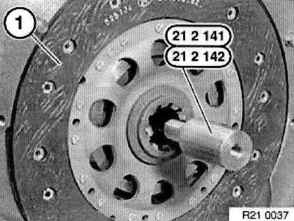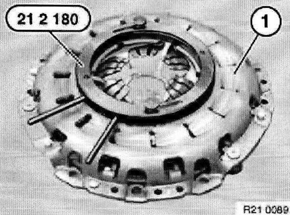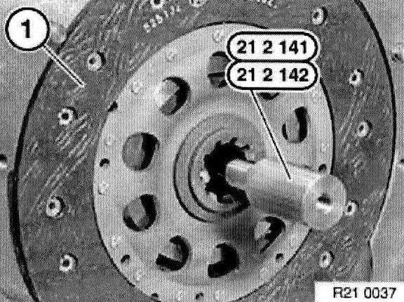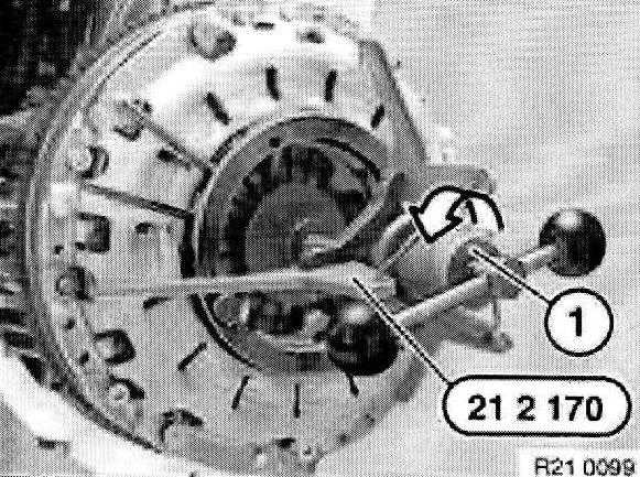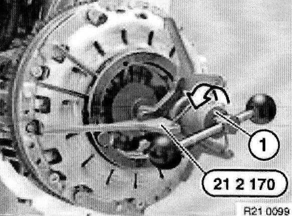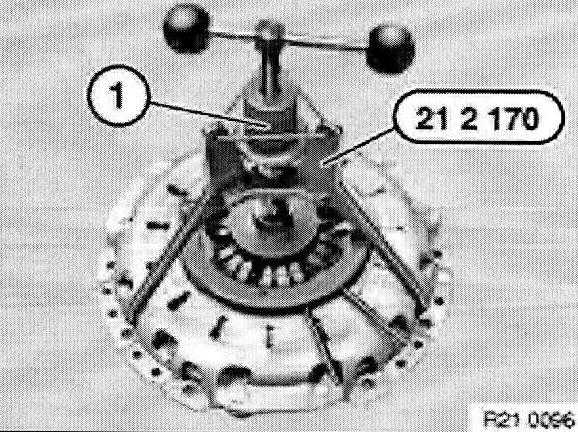 Withdraw special tool 21 2 141 or 21 2 142 with aid of accompanying screw (1) from clutch plate.
