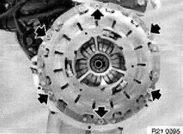 Release screws and remove SAC clutch from flywheel.
