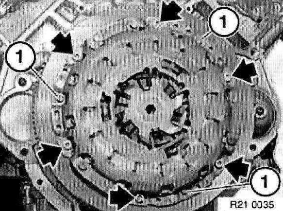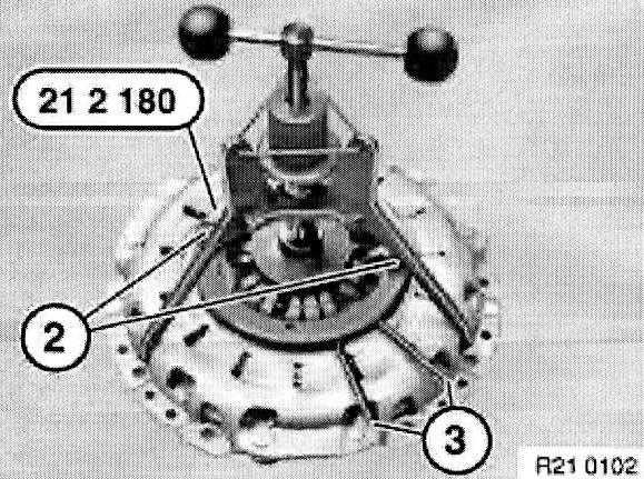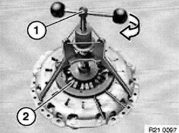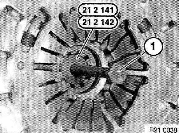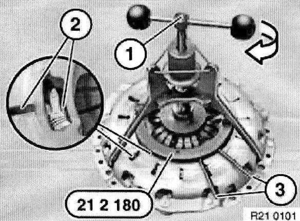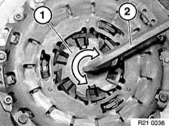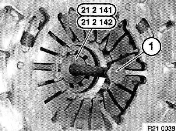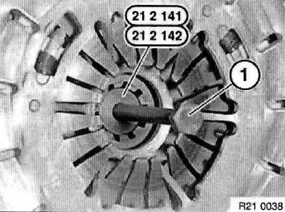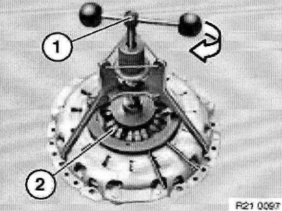 Center clutch plate (1) with special tool 21 2 141 or 21 2142.