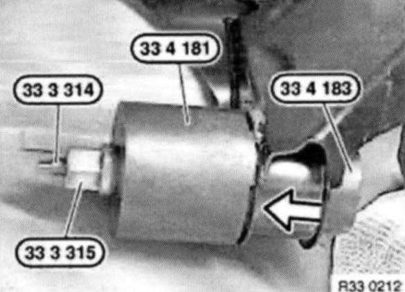 Remove rubber mount with special tools 33 3 314 / 315 and 33 4 181 / 183.