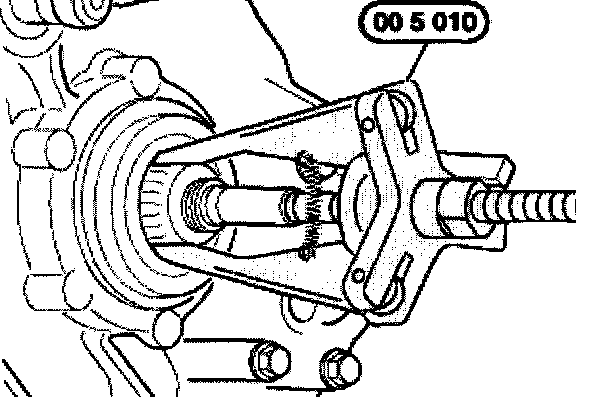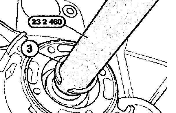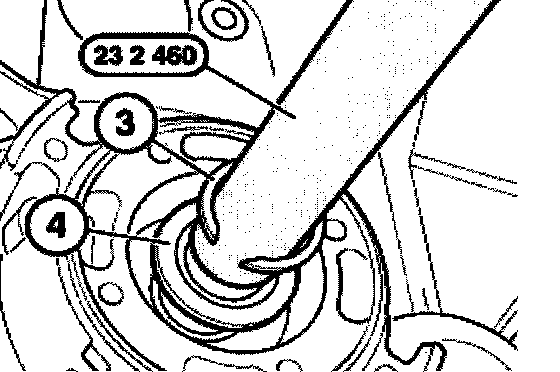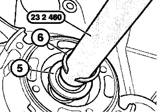 Lift out circlip (3) and pull off over special tool 23 2 460.