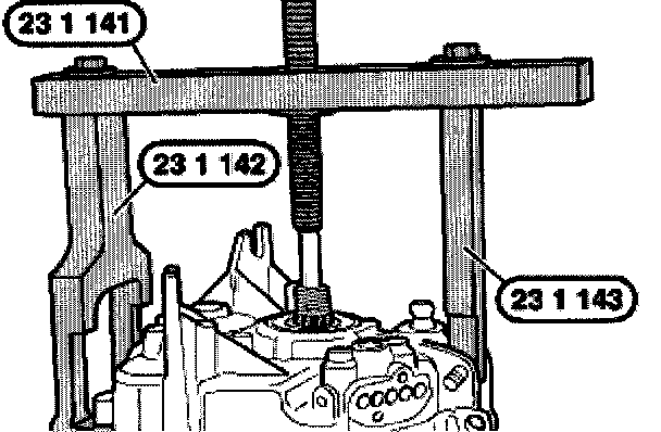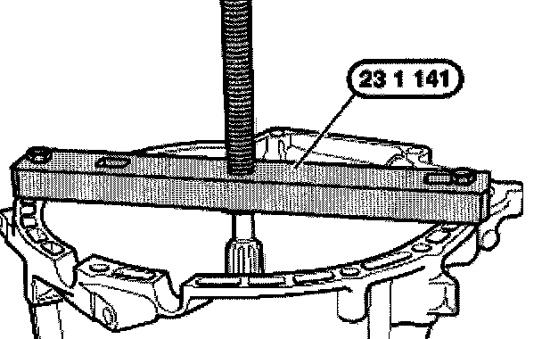 Fit special tool 23 1 141 together with 23 1 142 and 23 1 143 and install on rear case section.