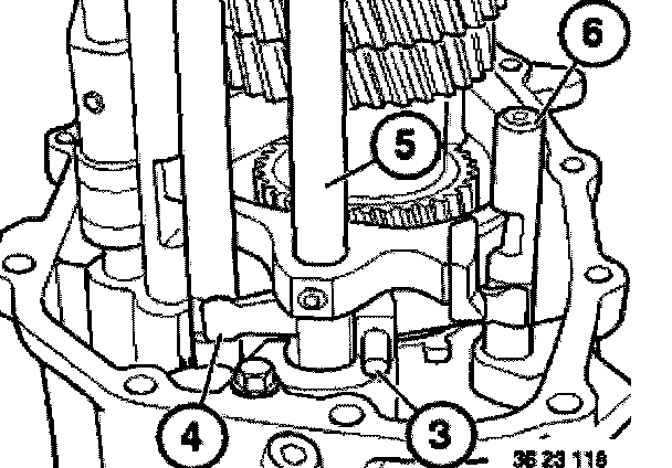 Note: The 5th gear synchronizer ring can jam. After completely assembling the transmission, the 5th gear synchronizer ring can be loosened again by twisting the output/input shafts against each other.