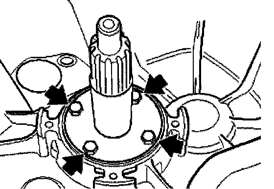 Drive dowel pin (1) out towards clutch case with a cotter pin extractor.