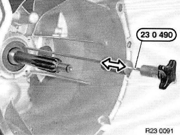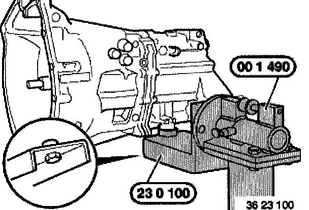 Fit transmission to assembly frame 00 1 490 with special tool 23 0 100.