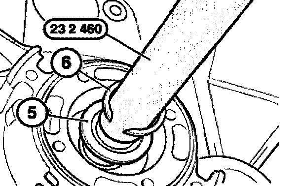 Lift off circlip (6) and secure to special tool 23 2 460.
