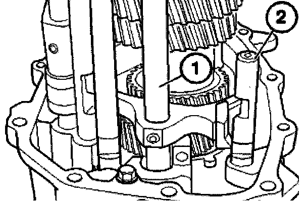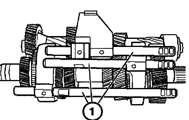 Note: To secure the position of the locking pin (1), the transmission must be shifted into 2nd gear.