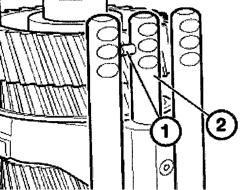 Locking pin (1) on middle selector rod (2) must locate in centre of selector rod.