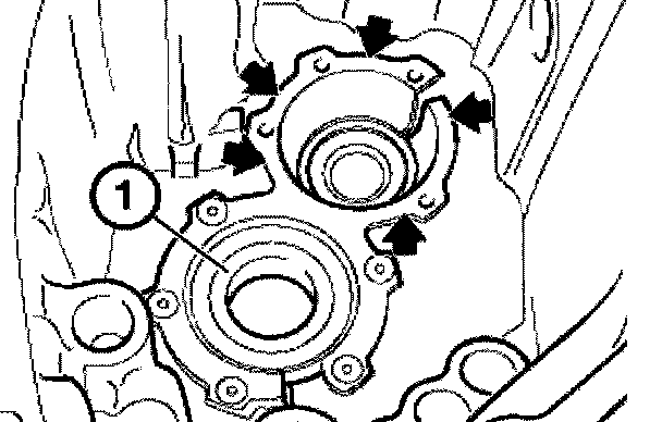 Note: Two covered removal holes (1) are located on front end of radial sealing ring.