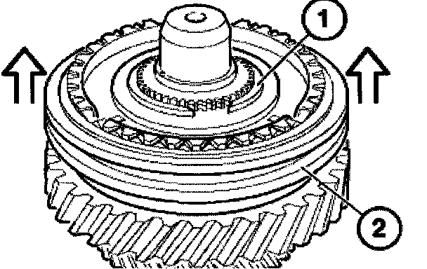Note: Lightly oil needle bearing (1) and synchronizer ring (2) on bearing surfaces with ATF-oil.