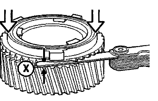 For this purpose, determine gap measurement X between synchronizer ring and the corresponding gears.