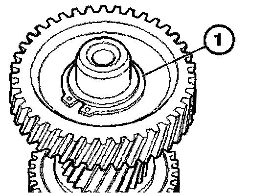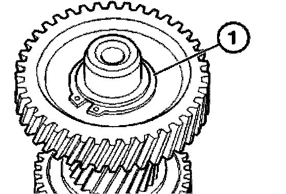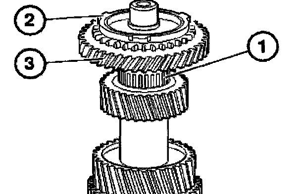 Remove 4th gear wheel (1), synchronizer ring (2) and needle bearing (3).