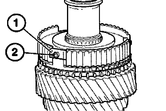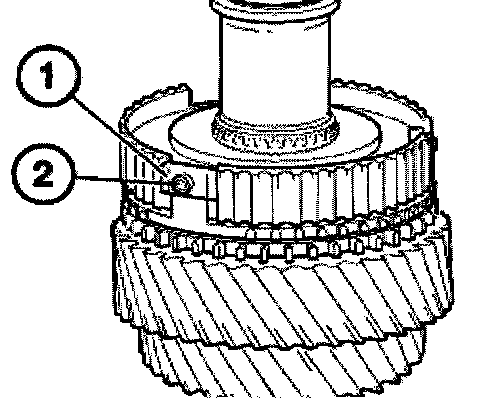 Attach sliding sleeve (1) with the orientation groove (2) to the 2nd gear wheel.