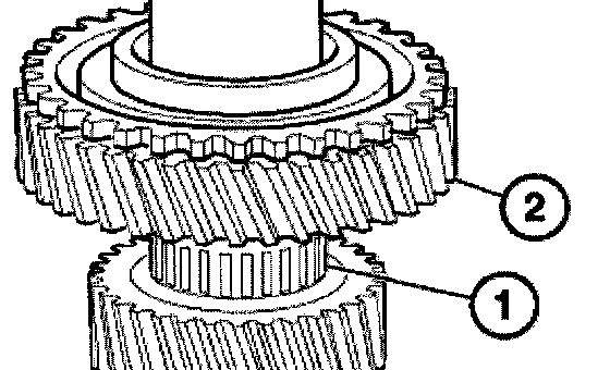 Connect needle bearing (1) and 2nd gear wheel (2) to the output shaft.