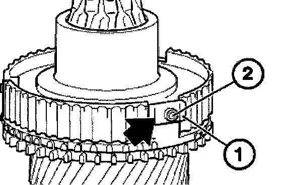 Attach sliding sleeve (1) with the orientation groove (2) to the reverse gear wheel (3).