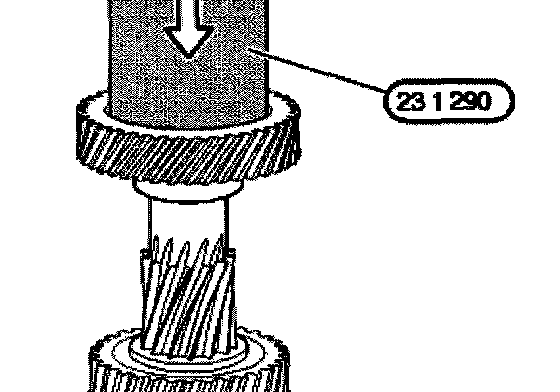Place fixed wheel on the layshaft and press firmly into place with special tool 23 1 290.